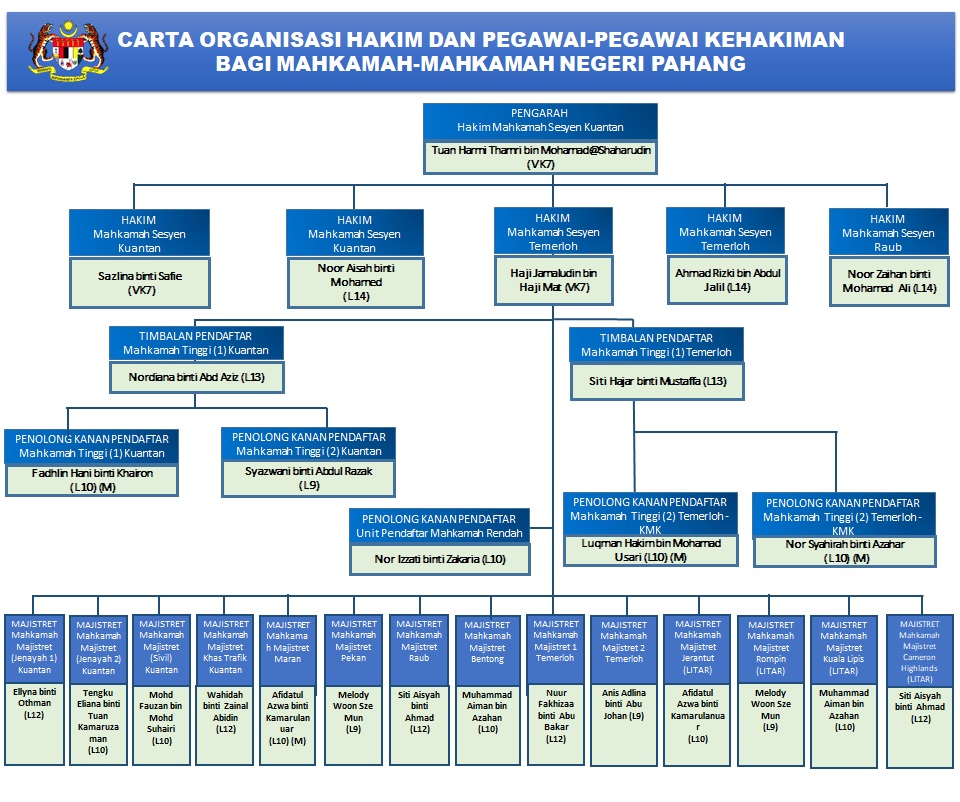 Mengurus semua urusan perkhidmatan pegawai dan kakitangan yang bertugas di Mahkamah Negeri Pahang