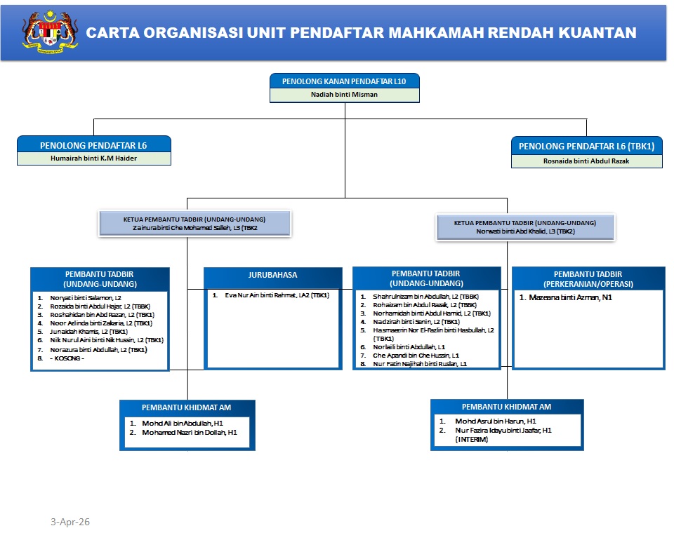 - Bertanggungjawab terhadap pendaftaran kes-kes sivil dan jenayah di peringkat mahkamah rendah