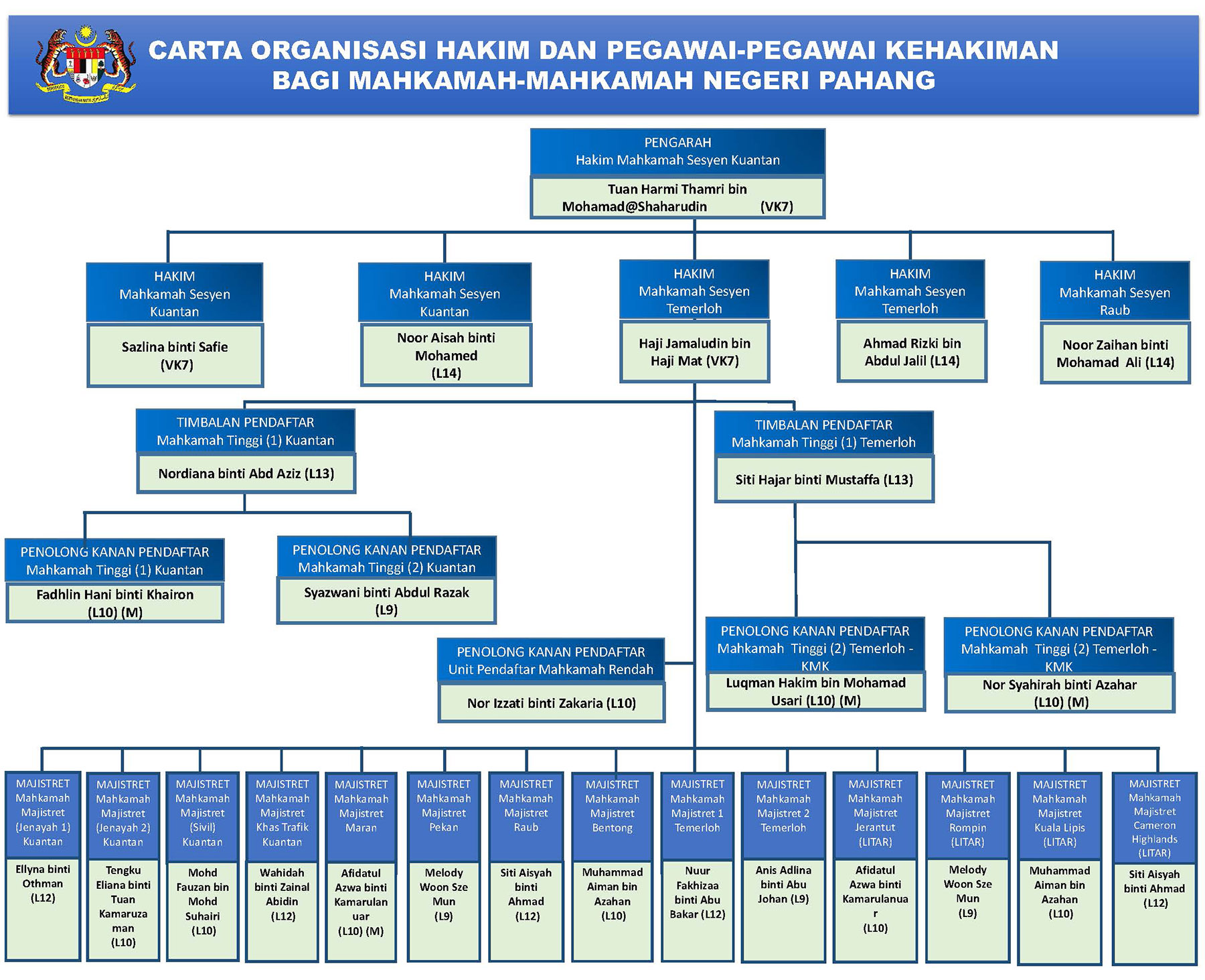 Mengurus semua urusan perkhidmatan pegawai dan kakitangan yang bertugas di Mahkamah Negeri Pahang