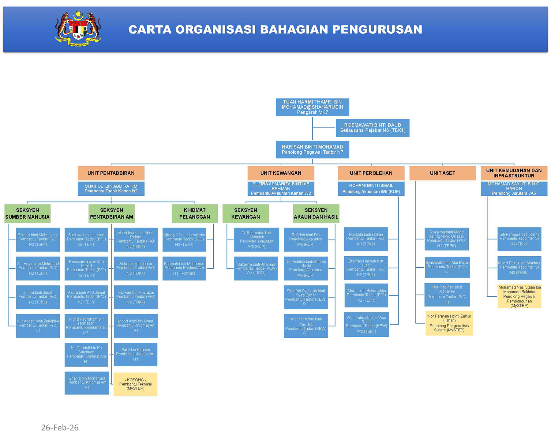 Bertanggungjawab dalam urusan-urusan perlantikan, pengesahan lantikan, pengesahan jawatan, perjawatan, pencen dan persaraan.