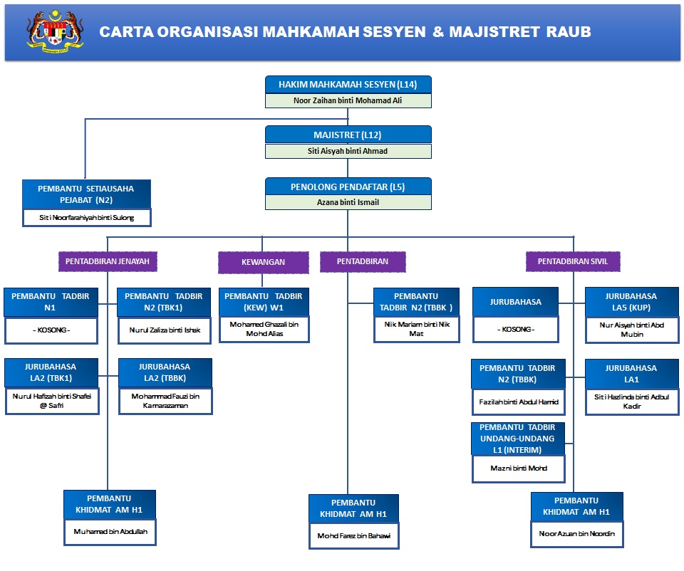 - Mengawalselia disiplin pegawai dan kakitangan di Unit Pejabat Pendaftaran Mahkamah Rendah